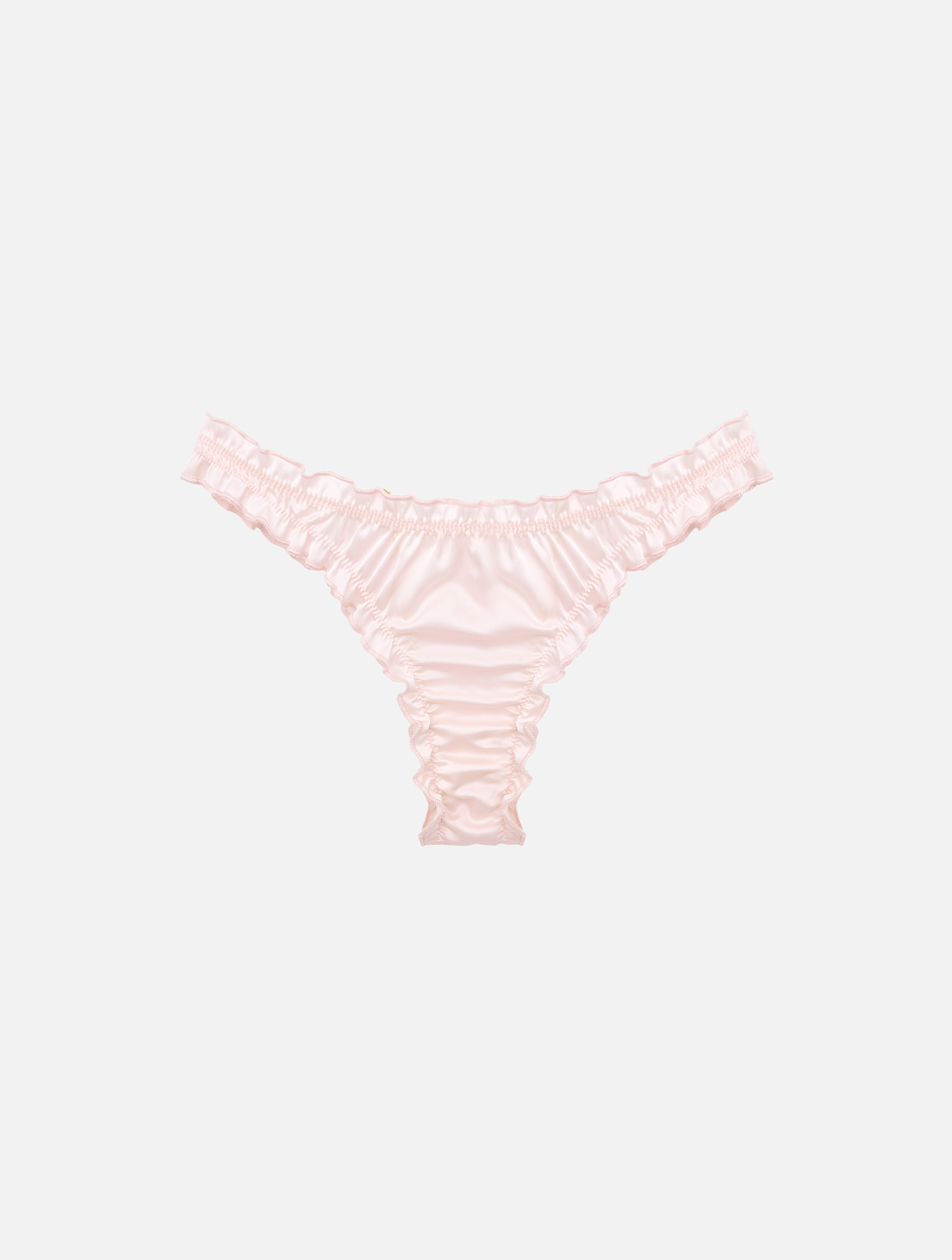 Трусики бразильяно с рюшами выполнены из атласа, имитирующего шелк. Средняя посадка. Обращаем внимание, что цвет изделия может немного отличаться от оттенка, представленного на фотографиях.